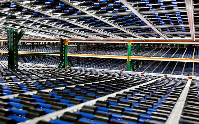 With a First-In/First-Out product rotation, carton flow storage racking is commonly found in warehouses with high volume order picking. These gravity driven systems are loaded from the back side and the product (boxes or cartons) flow to the front of the rack system for pick and packing.